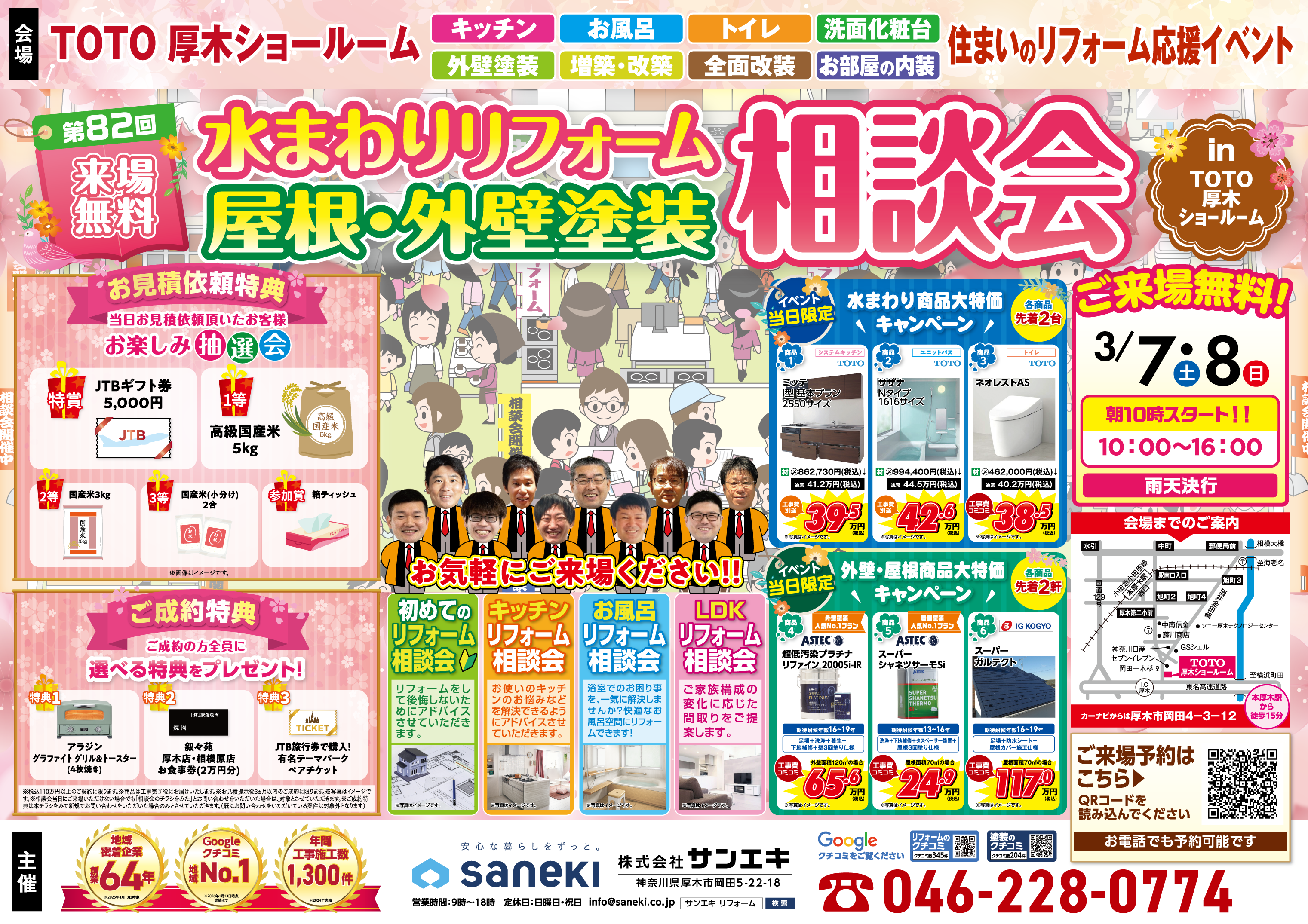 外壁塗装の工事品質で2年連続全国1位の表彰を受けたサンエキが、TOTO厚木ショールームで屋根・外壁塗装やリフォームに関する相談会イベントを3/7(土)・3/8(日)の2日間限定で開催します!